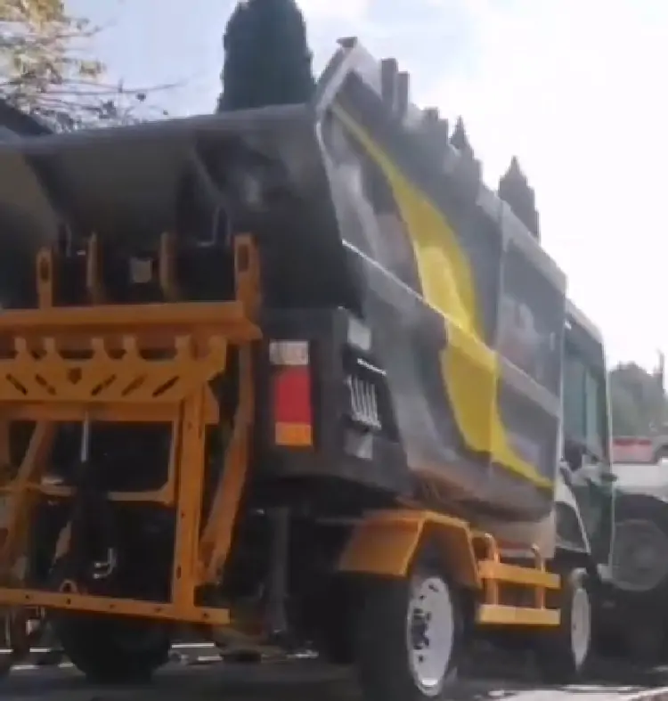 發(fā)往某環(huán)衛(wèi)公司的電動(dòng)垃圾清運(yùn)車裝車完畢準(zhǔn)備出發(fā)